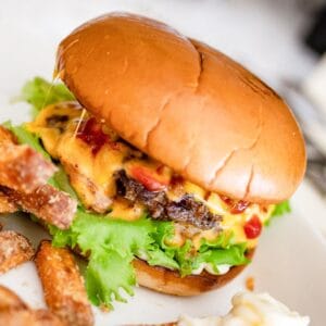 Klassisessa juustohampurilaisessa käytetään ns. amerikkalaista cheddaria. Sehän ei ole varsinaisesti oikeaa juustoa, mutta sekä sen maku, että sen kyky sulaa pihvin päälle, tekee siitä mielestämme parhaan vaihtoehdon hampurilaiseen.